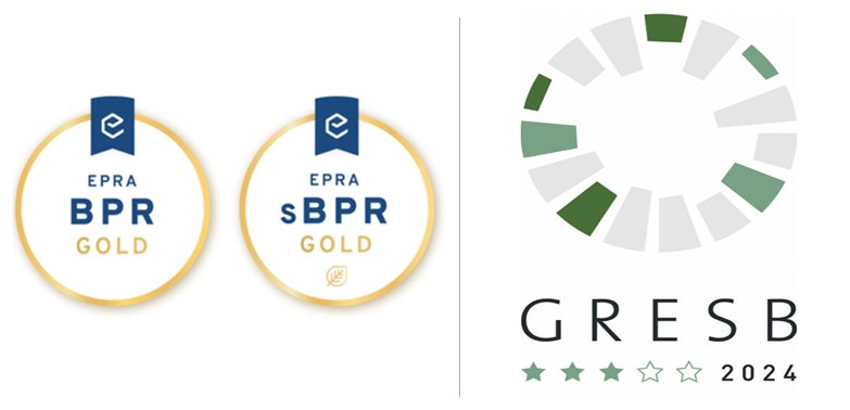 We are committed to transparent reporting and communicating our progress to all of our stakeholders. We have been awarded EPRA Gold for both our 2024 Annual Report and sustainability reporting. We have been reporting to GRESB since 2017 and in 2024, we maintained our GRESB three Green star status, scoring ahead or inline with the GRESB average in each of the Environmental, Social and Governance categories.